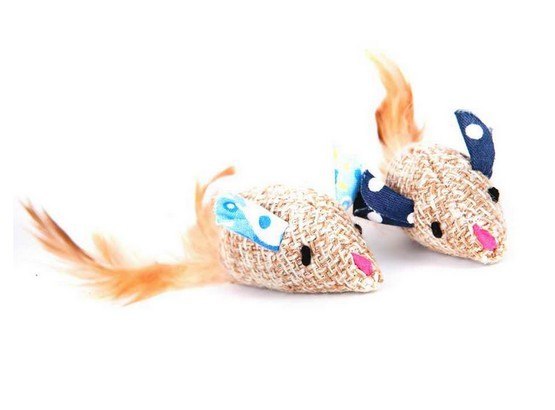 Zabawka jest bardzo lekka, a jej niewielkie gabaryty pozwolą na swobodne łapanie przez kota. Myszki mają ogonki wykonane z piór, które koty wręcz uwielbiają. Przy ogonku zamocowany jest dzwoneczek, aby dodatkowo pobudzać do zabawy.