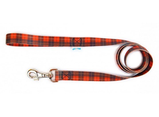 Smycz o kraciastym wzorze utworzonym z krzyżujących się różnej szerokości i barwy pasów, przebiegających w takim samym porządku zarówno wzdłuż osnowy, jak i wątku. To ponadczasowy wzór, który będzie doskonałym wyborem!