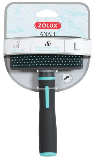 Umożliwia delikatne szczotkowanie podszerstka, dzięki elastycznym igłom, których plastikowe końcówki chronią skórę psa przed podrażnieniami. Plastikowe końcówki zapewniają większy komfort zwierzęcia. Rozczesuje, usuwa martwy podszerstek i wygładza sierść.