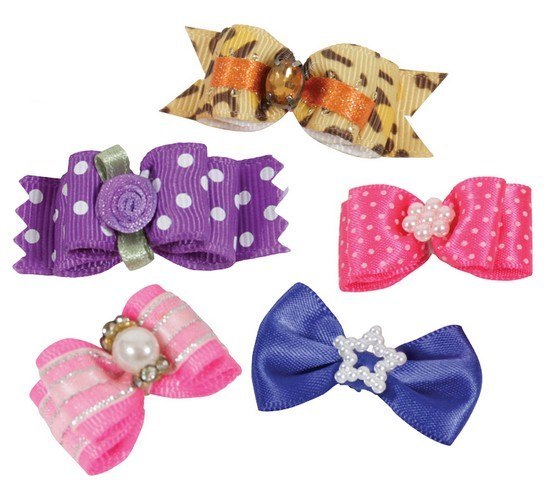 Śliczne kokardki będą ozdobą dla pieska i pomogą spiąć wpadające mu do oczu włosy.